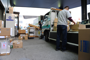 約束した納期での納入率は99.0%。到着予定の前後1時間以内に配達を完了することで、お客さまの工事の段取り工場に貢献しています。すべて前日にルートを決め積み込みを行う当社独自のデリバリーシステムにより、部品一つでも確実に配送します。